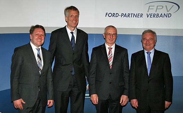 von 14: Gemeinsam auf gutem Weg: Ford-Verbandspräsident Volker Reichstein, Ford-Vertriebschef Wolfgang Booms, Philip Pfohe der Präsident des europäischen Ford-Händlerverbandes, und Geschäftsführer Johann Gesthuysen.