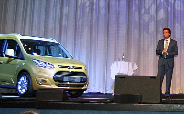 von 14: Wolfgang Booms präsentierte den Händlern in Bonn am Freitag zwei neue Fahrzeuge: den Connect Tourneo und den Ecosport.