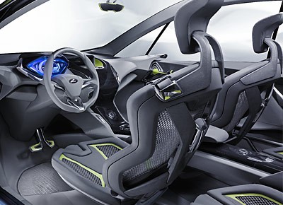 von 8: Die vier Leichtbau-Einzelsitze scheinen zu schweben, sind aber an einer Art Brückenkonstruktion unterhalb der Mittelkonsole aufgehängt.