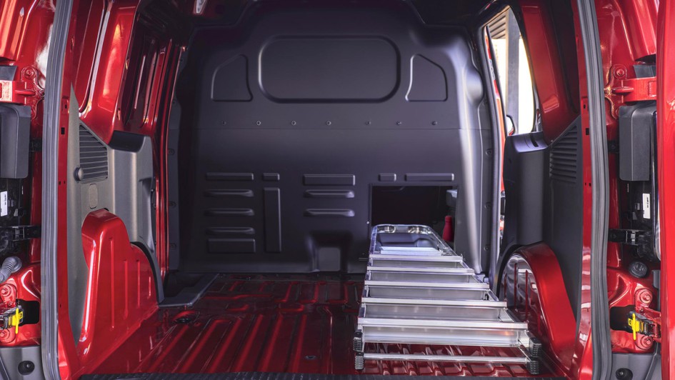 von 8: Die maximal zulässige Zuladung steigt auf bis zu 845 Kilogramm. In Verbindung mit einer neuen, demnächst optional erhältlichen Durchladeöffnung in der Rückwand nimmt der kleine Transporter sogar 2,60 Meter lange Rohre oder Bretter an Bord auf.