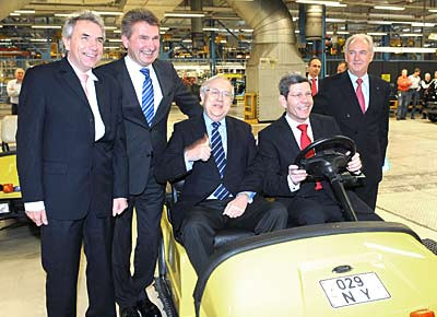 von 10: Gewürdigt wurde das Jubiläum im Beisein von Bundeswirtschaftsminister Rainer Brüderle und dem Stellvertretenden NRW-Ministerpräsidenten und Landesinnovationsminister, Prof. Dr. Andreas Pinkwart, sowie Kölns Oberbürgermeister Jürgen Roters mit einer Feierstunde in der Montagehalle der Fiesta-Fertigung.