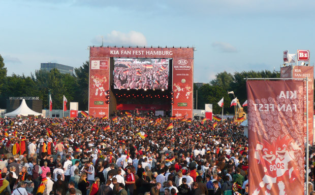 von 8: Kia ist als offizieller UEFA- und FIFA-Partner Hauptsponsor der Europa- und Weltmeisterschaften. Wie schon 2008 (Bild) zeigte der Koreaner auch 2012 Präsenz beim Kia Fan Fest auf dem Heiligengeistfeld in Hamburg St. Pauli. Zudem präsentiert Kia Fußball-Bundesliga in der Saison 2012/2013 auf Sky. (Foto: Kia)
