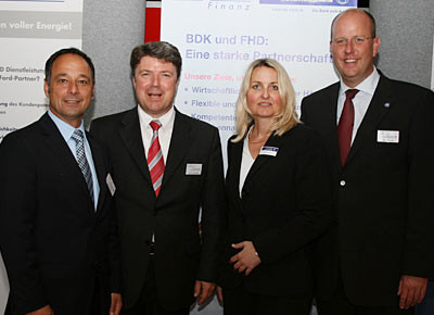 von 31: Die Bank Deutsches Kraftfahrzeuggewerbe arbeitet eng mit der FHD zusammen, v.li.: Rainer Bickel (Vertriebsleitung Kooperationen Handel) mit den Regionalleitern Achim Kreyenpoth, Annette Jorns und Stefan Meede.