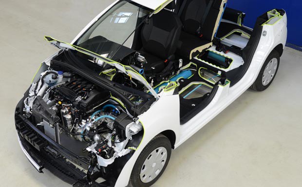 von 6: Bei der Antriebstechnik "Hybrid Air" von Citroen handelt es sich um eine Lösung, die einen Benzinmotor mit einem Druckluftsystem als Energiespeicher kombiniert.