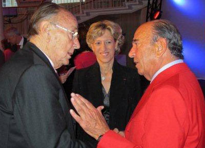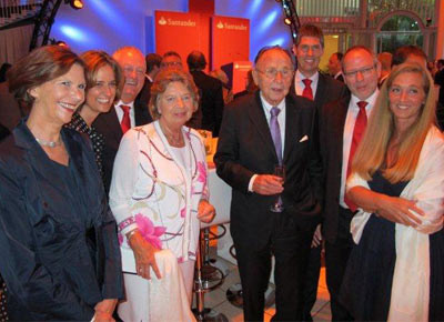 von 21: Emilio Botin und Magda Salarich, CEO Santander Consumer Finance, begrüßen Ex-Außenminister Hans-Dietrich Genscher in der Rotunde im Gästehaus der Bundesregierung am Petersberg, hoch über Bonn.