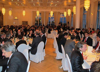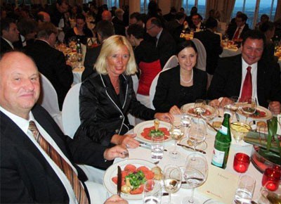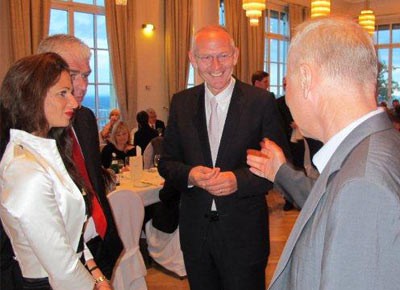 von 21: Thomas Hanswillemenke mit Gästen diverser Europavertretungen beim Gala-Menü auf dem Petersberg.