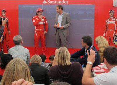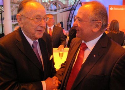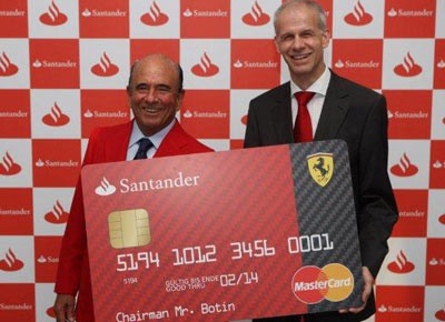 von 21: CEO Emilio Botin und der Vorstandsvorsitzende der Santander Consumer Bank Deutschland AG, Ulrich Leuschner, präsentierten die Ferrari Card. Sie wird ab dieser Woche auf dem deutschen Markt eingeführt. Die Vorzüge liegen in Gewinnchancen an Gewinnspielen sowie diversen Extras wie 15 Prozent Rabatt im Ferrari Store