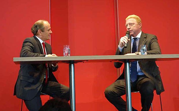 von 24: Boris Becker stellte sich den Fragen des Interviewers und das in origineller und professioneller Art. Wer wird morgen auf Platz 1 im Formel-I-Wettbewerb stehen? Becker: "Der schnellste Fahrer!" Was war in ihrem Leben ihre größte Niederlage? Becker: "Lassen sie uns darüber nachher an der Bar sprechen!"