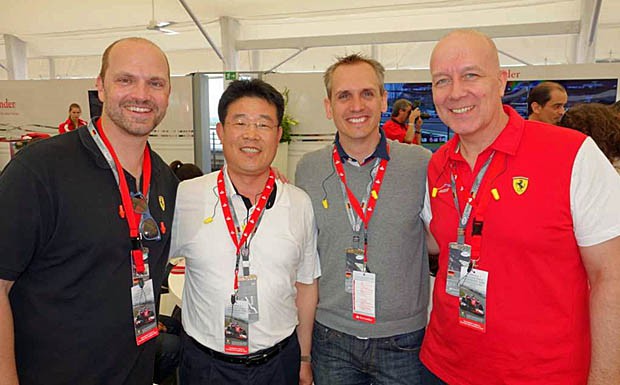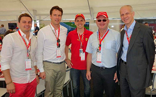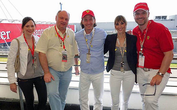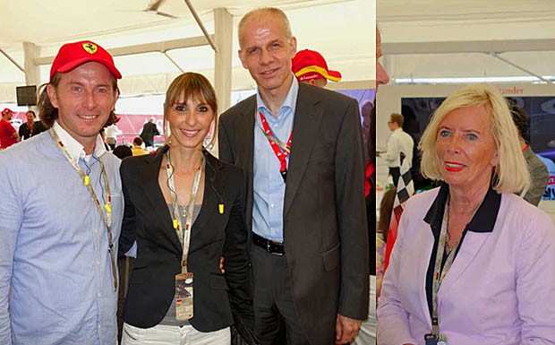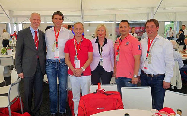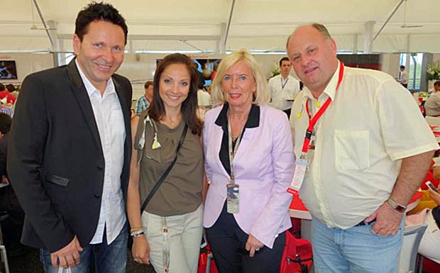 von 24: Im Santander-Paddock-Club: Helmut Peter, MB-Vertreter (re), Marion Johl, Günei Jitov und Uwe Dinnebier, Mehrmarkenhändler Berlin