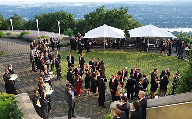 von 24: Ein Blick auf die Rheinterrasse im historischen Gästehaus der Bundesregierung Petersberg, hoch über Bonn gelegen. Ouvertüre zum Galaabend!