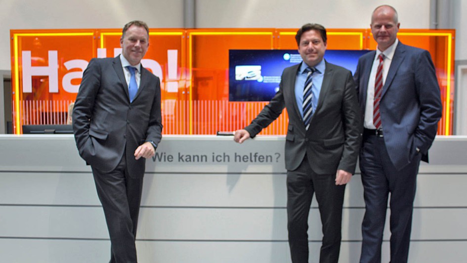 von 7: Markus Joppich, Geschäftsführer Hommert Auto Zentrum (M), begrüßte Michael Neteler (l.), Regionalleiter Süd, Vertrieb und Marketing Ford und Udo Horstmann (r.), Gebietsleiter Verkauf und Marketing Ford.