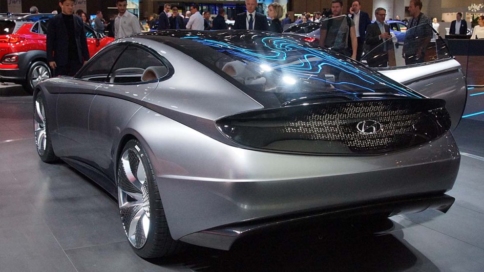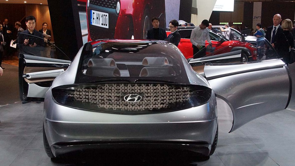 von 8: Wie bei Designstudie üblich, hat sich auch Hyundai beim Le Fil Rouge für gegenläufig angeschlagene Türen und den Verzicht auf B-Säulen entschieden.