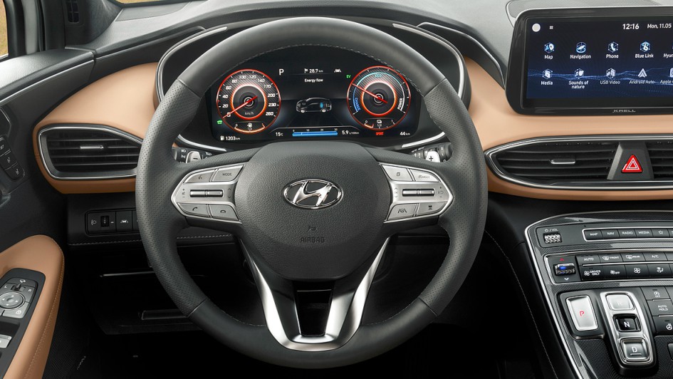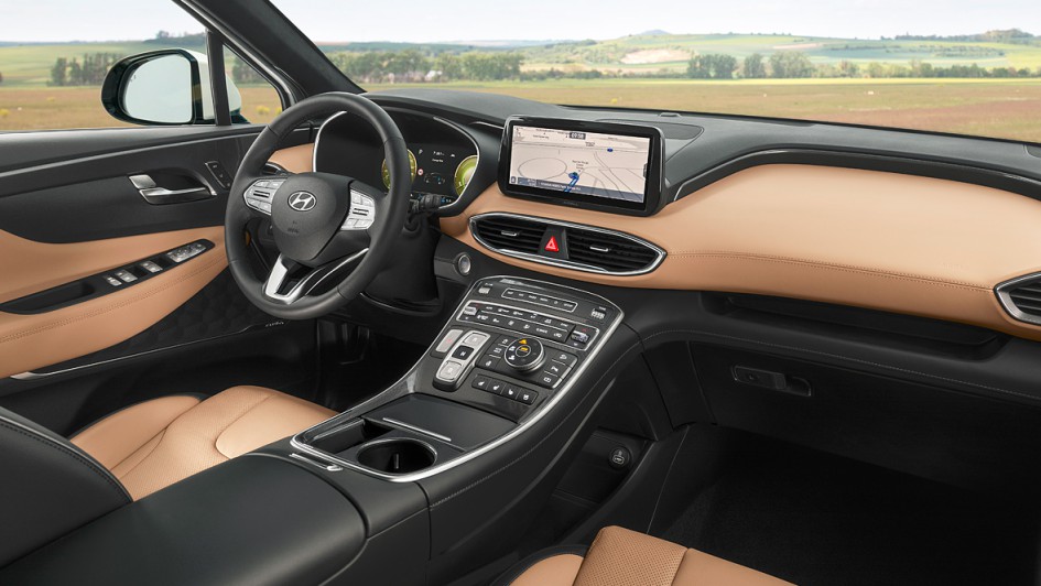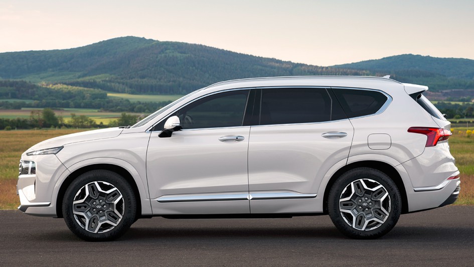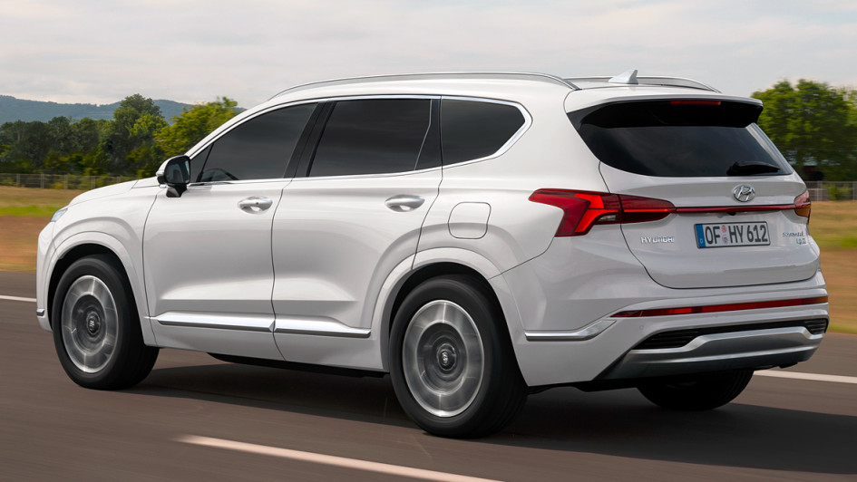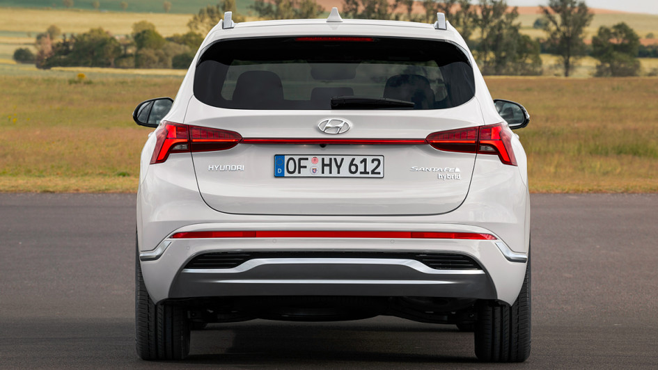 von 7: Sehr wahrscheinlich wird Hyundai den Santa Fe mit dem Facelift auch als Plug-in-Hybrid anbieten. Darauf deutet unter anderem der Schriftzug auf der Heckklappe.