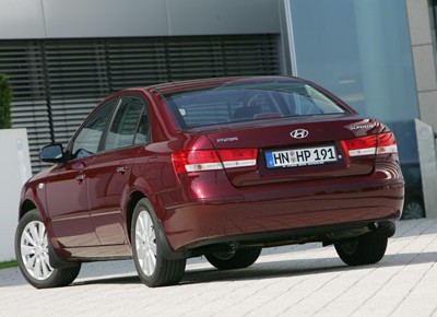 von 8: Frisch ins Modelljahr 2009: Die Frontgestaltung des Hyundai Sonata sorgt mit dem neuen Kühlergrill, den neu gezeichneten Scheinwerfern und den größeren Kühlerluftöffnungen für einen hohen Wiedererkennungswert.