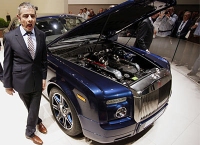 von 19: Der britische Schauspieler Rowan Atkinson posiert neben einem Rolls-Royce Ghost. (Foto: Martin Oeser/dapd)