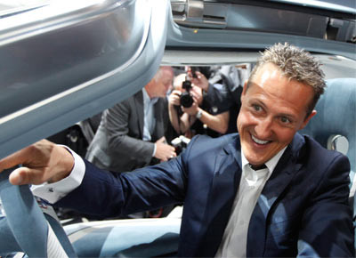 von 19: Formel-Eins-Pilot Michael Schumacher am Mercedes-Stand