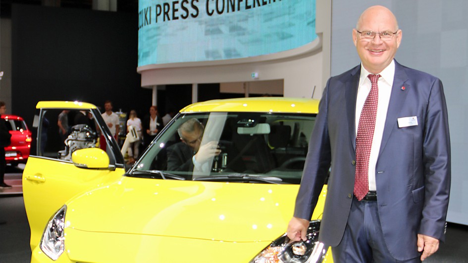 von 18: Suzuki Deutschland Vertriebschef Thomas Wysocki hat gut lachen. Mit dem Dieselskandal hat die Marke nichts am Hut: Der Anteil der Selbstzünder bei den Japanern liegt bei lediglich sechs Prozent. Der neue Swift Sport feierte seine Weltpremiere auf der IAA.
