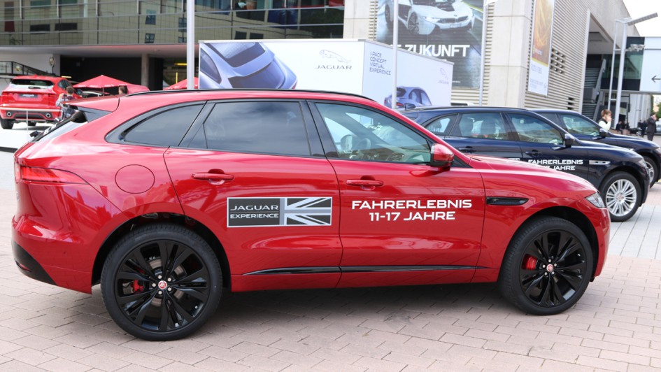 von 18: Nachwuchsförderung: Auf dem Außengelände konnten auch Jugendliche zwischen elf und 17 Jahren Jaguar fahren. Lediglich ein Erziehungsberechtigter musste zustimmen. Dafür dass die Autos unversehrt blieben, sorgte die Begleitung durch einen Fahrtrainer und die doppelte Pedalerie wie bei einem Fahrschulauto.