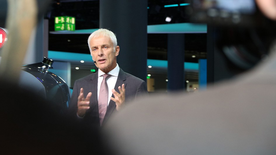 von 18: VW-Chef Mathias Müller gab sich demütig: "Die Zeiten, in denen sich unsere Branche in Frankfurt selbst gefeiert hat, sind vorbei." Gleich darauf kündigte er vollmundig an, dass spätestens 2030 Volkswagen sein gesamtes Modellportfolio durchgängig elektrifiziert haben werde. Und weiter: "Der Durchbruch kommt mit denen, die eine Technologie in relevanten Stückzahlen auf die Straße bringen."