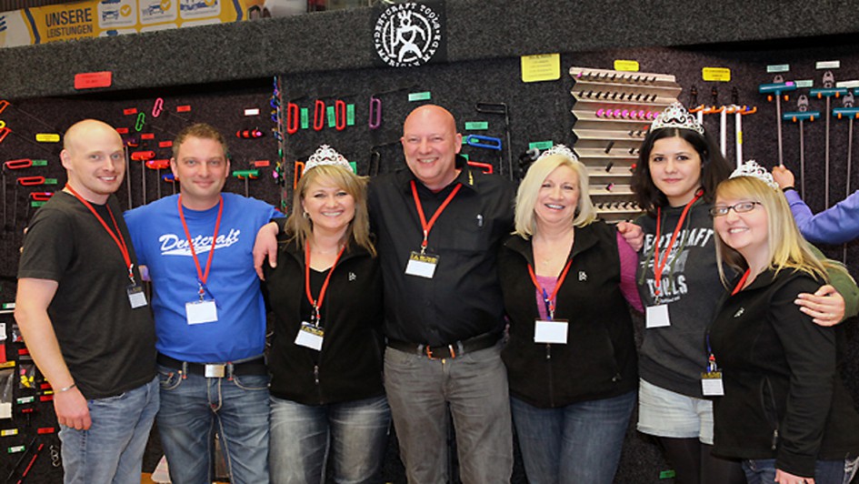 von 44: Nach eigenem Bekunden die „Könige“ beim Dellendrück-Equipment, deshalb die Kronen (v. l.): Richard Bowles, Craig Honeybun, Holly Davis, Freddie Jonker (Minirep PDR), Chefin Sonya Emmert, Jamila Monghour, Jenifer Vincent von Dentcraft aus den USA