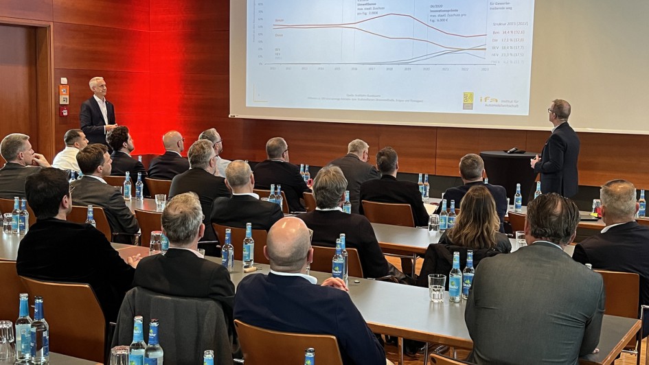 von 15: Bereits am Vortag des Kongresses stellten das Institut für Automobilwirtschaft und die Deutsche Automobil Treuhand (DAT) in Nürtingen den "HändlergruppenMonitor 2024" vor. Die Branchenanalyse erhebt seit 20 Jahren die zentralen Daten der größten Autohäuser in Deutschland, darunter Neu- und Gebrauchtwagenabsatz, Rendite, Beschäftigtenzahlen und Umsatz.