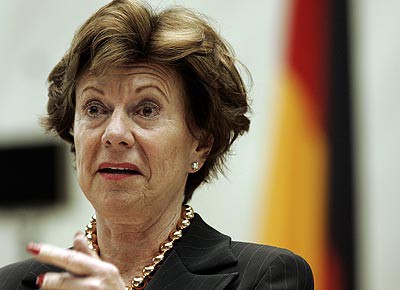 von 19: 26.5. Die EU-Wettbewerbskommissarin Neelie Kroes legt den Evaluierungsbericht der EU-Kommission zur GVO 2002 vor. (Foto: Berthold Stadtler / ddp)