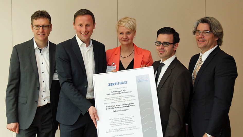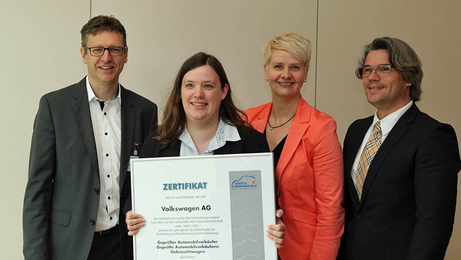 von 10: Ihre Kollegin Verena Wahnschaff (2. v. l.) von Volkswagen Pkw ließ 2013 die Ausbildung zum Geprüften Automobilverkäufer rezertifizieren.