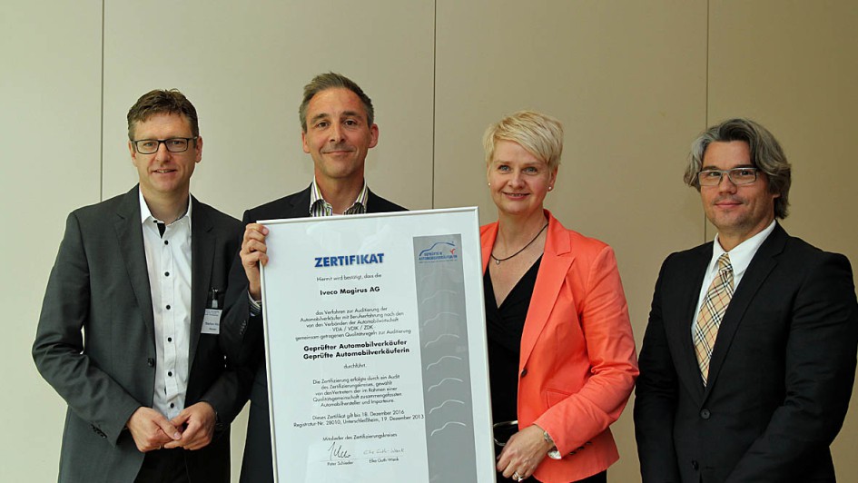 von 10: Iveco, in Northeim vertreten durch Martin Schmidt (2. v. l.), ließ das Verfahren zur Auditierung der Automobilverkäufer mit Berufserfahrung zertifizieren.