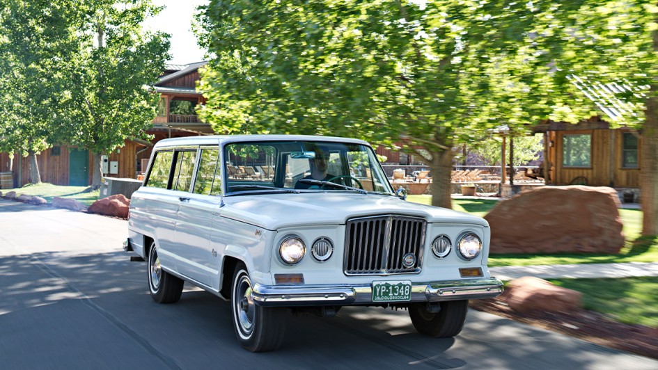 von 9: Der 1946 eingeführte familienfreundliche, siebensitzige Jeep Station Wagon initiierte mit seiner Stahlkarosserie die SUV-Bewegung und wurde erst 1949 mit optionaler Allradtechnik ausgestattet.