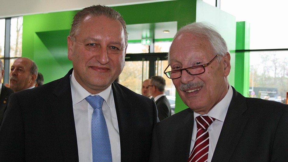 von 10: Auch der 1. Stellvertretende Bürgermeister von Langenhagen Willi Minne (l.) und Bürgermeister Mirko Heuer (r.) waren zur Einweihung des neuen Autohauses gekommen.