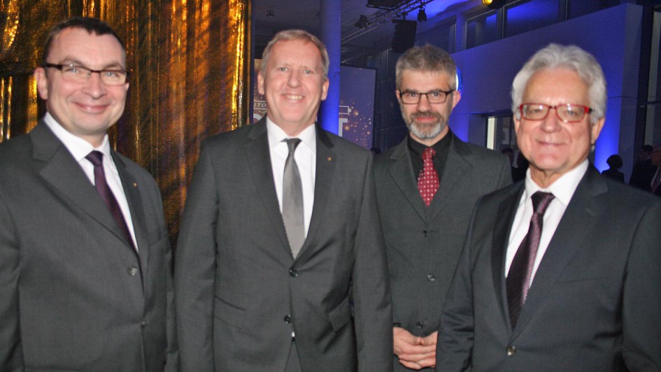 von 12: Peter Meier und Bernhard Heusl von der Nürnberger Versicherung, Stefan Dippel vom gleichnamigen Autohaus aus Neustadt und ZDK-Vorstandsmitglied Harry Brambach.