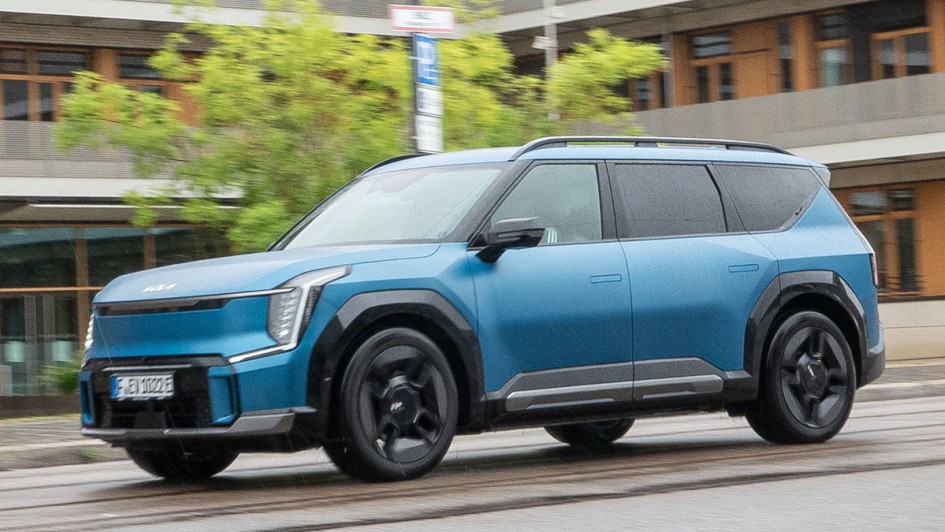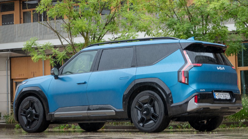 von 12: Der EV9 ist eine beeindruckende Erscheinung: Knapp über fünf Meter in der Länge, hier kann es beim Rangieren und Parken schon knapp werden.