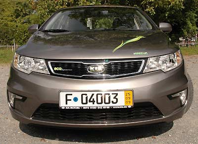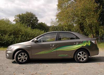 von 12: Die Kia-Studie Forte LPI Hybrid setzt auf zwei vergleichsweise weitentwickelte Technologien: Der Elektroantrieb ergänzt einen Verbrennungsmotor, der nicht mit Benzin oder Diesel, sondern mit Flüssiggas (LPG) arbeitet.