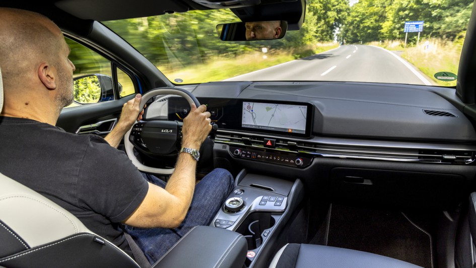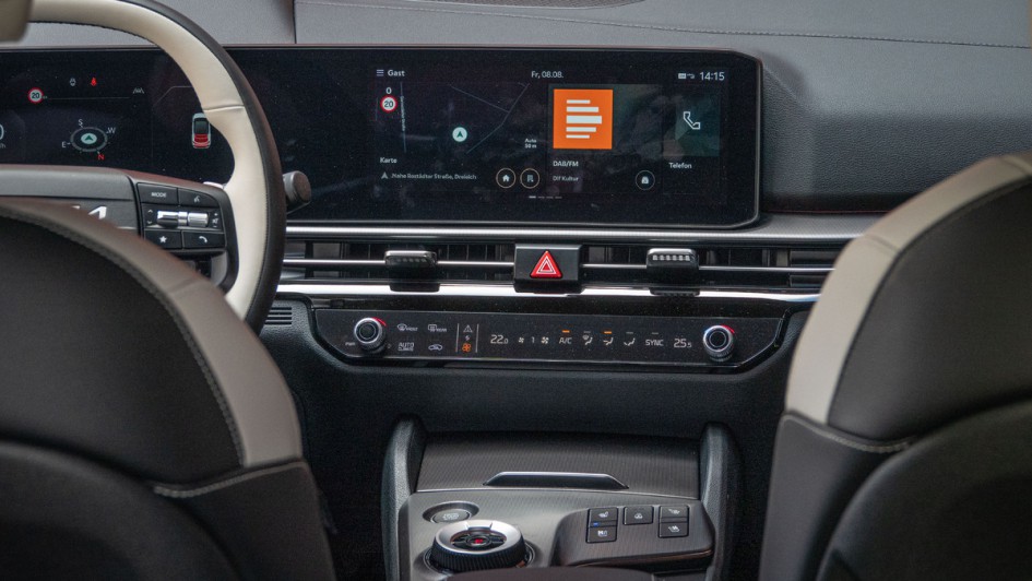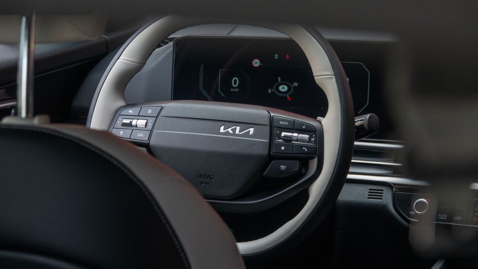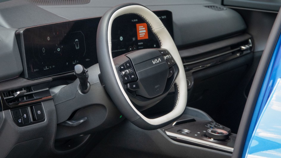 von 18: Das Lenkrad des Kia Sportage kommt ab dem 2026er-Modell mit nur noch zwei Spangen aus – sieht leicht aus. Die Walzen und Tasten im Lenkrad vereinfachen das Bedienen erheblich.