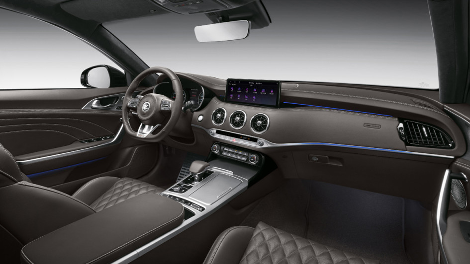von 3: Mit vorsichtig modernisiertem Design geht Kias Topmodell Stinger ins neue Modelljahr. Selbst Fans erkennen die Änderungen nur bei genauem Hinsehen. Die Fließheck-Limousine trägt neue, schmaler wirkende LED-Scheinwerfer an der Front.