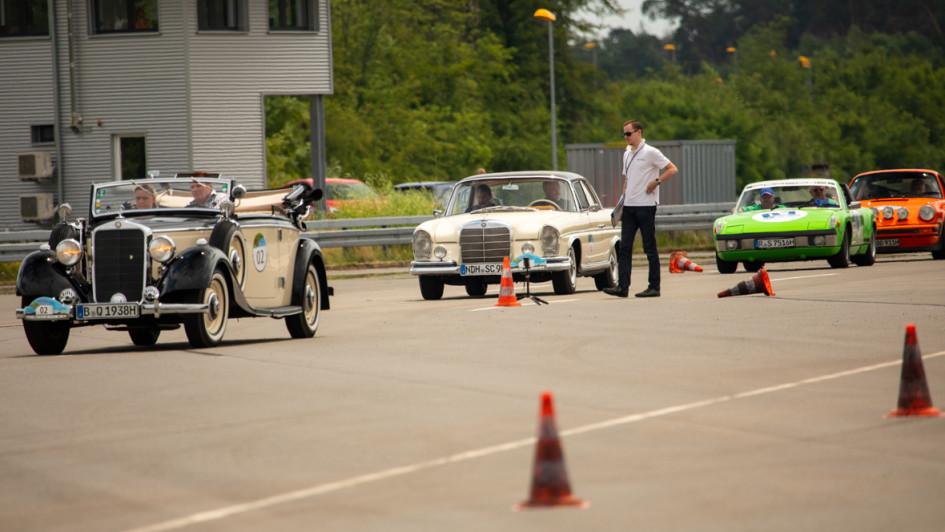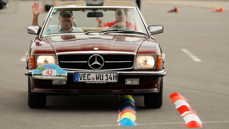 von 14: Mit dem Reifen durch eine vorgegebene Spur. Kein Problem für Fahrer Dieter Wulfing, Auto-Wulfing, und Rainer Petersen in einem Mercedes-Benz 300 SL.