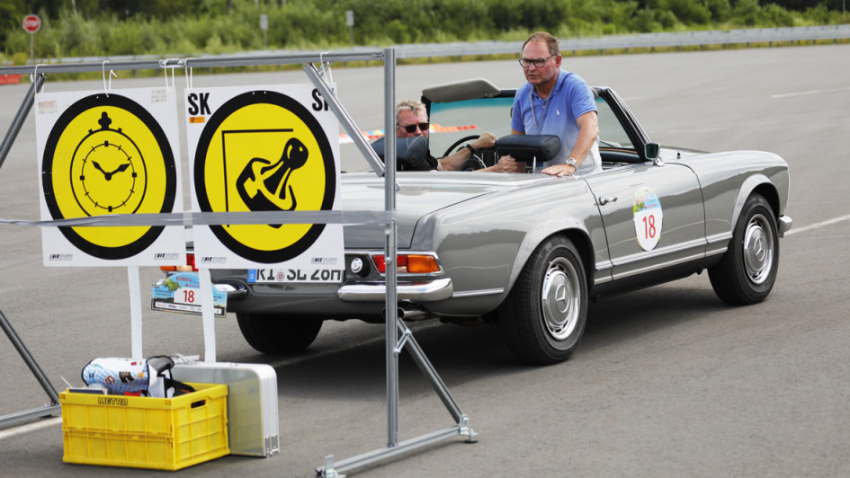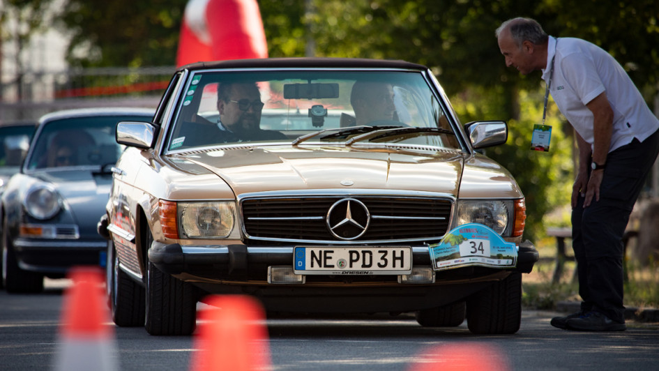 von 14: Kurzeinweisung für Team 34, Ivca Majic (Fahrer) und Kai Dahlmann, Autohaus Louis Dresen. Die beiden waren in einem Mercedes-Benz 450 SL unterwegs.