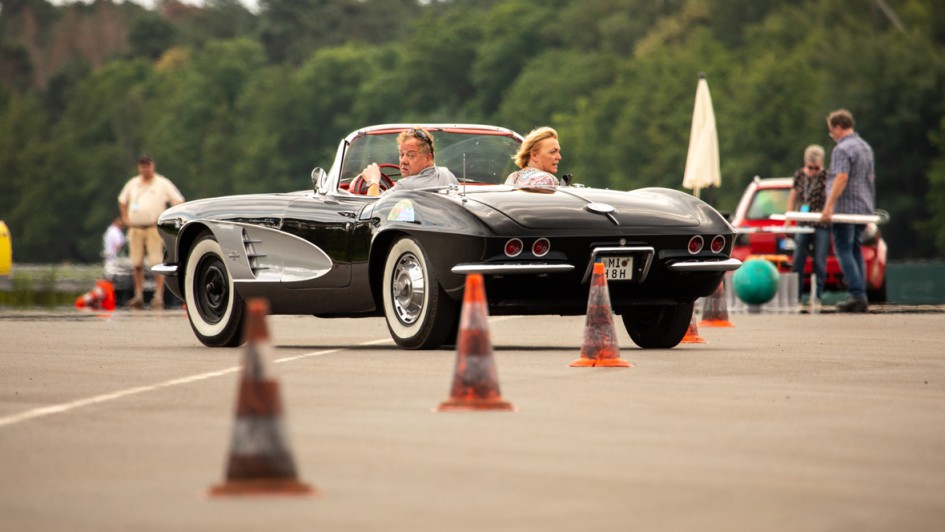 von 14: Volle Aufmerksamkeit verlangte im Anschluss auch die "Gymkhana"-Station. Bei diesem Begriff denken viele an Drift-Star Ken Block – doch größtmöglicher Gummiabrieb war hier nicht das Ziel. Vorwärts und dann auch noch rückwärts ging es durch einen Slalom. Wie hier bei Linda und Clemens Betzemeier, Betzemeier Automotive Software.