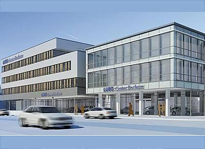 von 4: Die Fahrzeug-Werke Lueg AG will ihren Stammsitz Bochum umfassend modernisieren. An der Universitätsstraße entsteht bis Ende 2011 für insgesamt 12 Millionen Euro ein Mercedes-Autohaus nach neuesten Standards mit einer 60 Meter langen Glasfront.