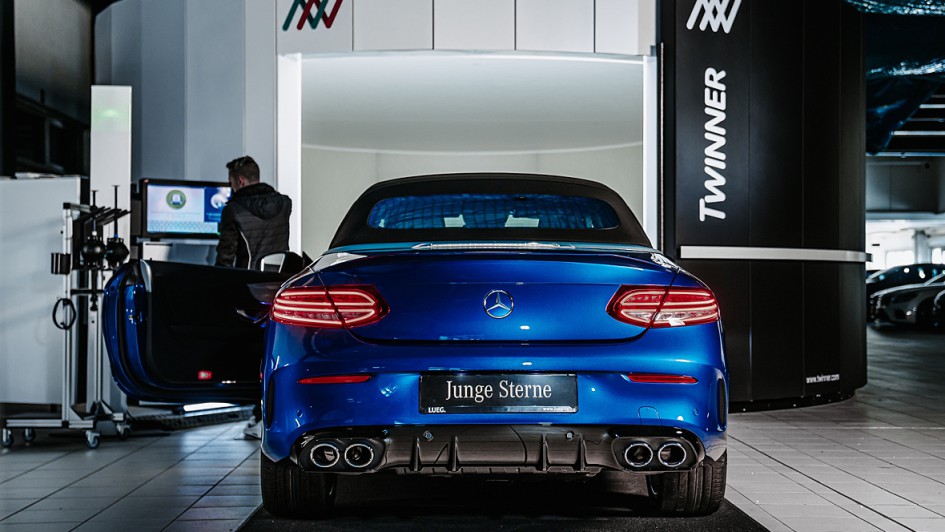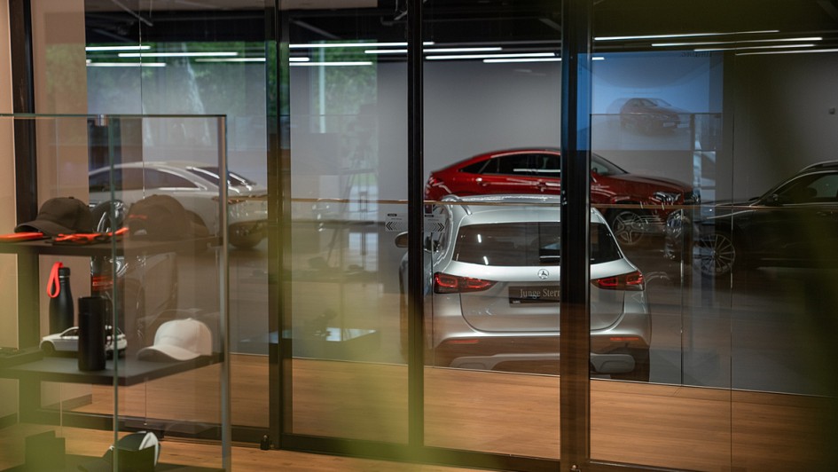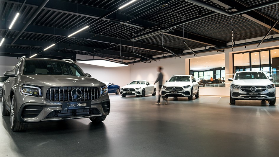von 8: Im Auslieferungsbereich stehen die Mercedes zur Probefahrt bereit. Das Center ist der erste klassische Gebrauchtwagenstandort ohne physische Ausstellung - das spart Fläche.