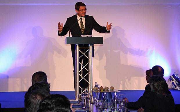 von 19: Emmerich Engels, Leiter der Vertriebsorganisation Deutschland, lobte das neue Gebäude als "echten Hammerbetrieb".