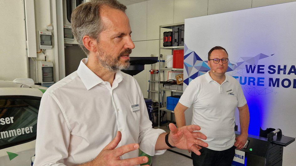 von 10: V.li.: Benjamin Haas, Mahle Kommunikation, Philipp Grosse Kleimann, Mitglied der Konzernleitung, und Georges Mourad, Director Global Service Solutions