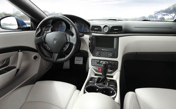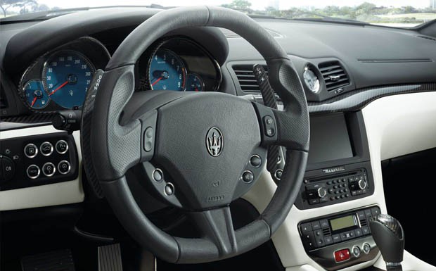 von 8: Das unten abgeflachte Lenkrad des Maserati GranTurismo Sport ist etwas zu groß. Der Arbeitsplatz aber edel und aufgeräumt.