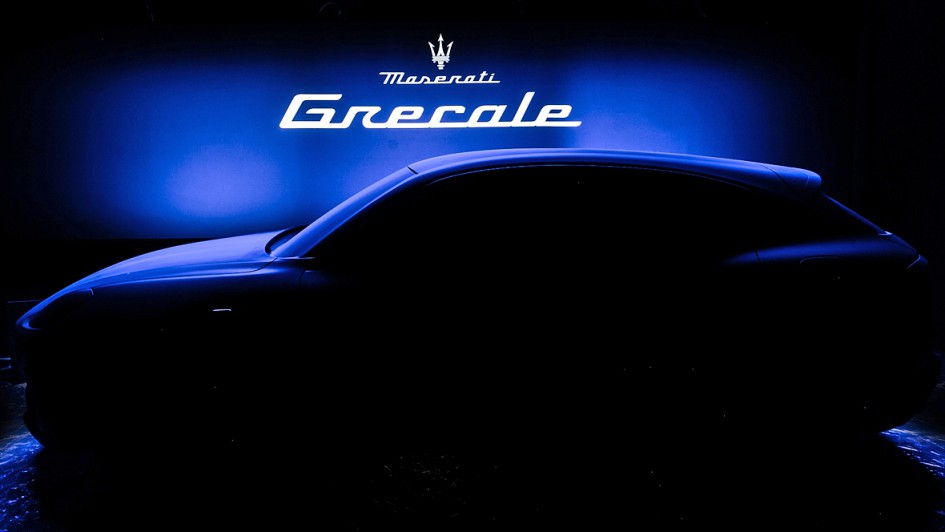 von 4: Gewollt unscharf: Maserati hat erste Bilder des neuen SUV-Modells Grecale veröffentlicht. Trotzdem lassen sich einige Details erahnen. In der Front deuten sich große Luftöffnungen und LED-Scheinwerfer an.