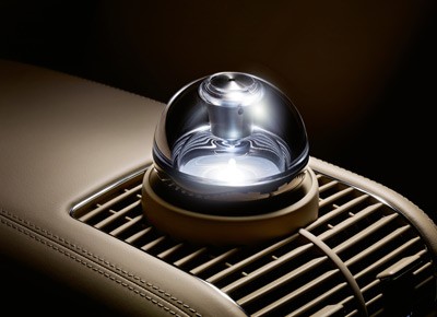 von 9: Die Flakon-Beduftungsanlage erzeugt auf Tastendruck im Innenraum individuell auswählbare Parfümdüfte aus einer von innen beleuchteten Acrylglaskugel auf der Fond-Mittelkonsole.