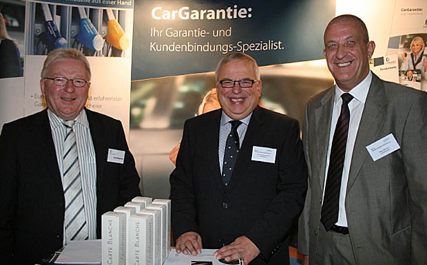 von 23: Die CarGarantie-Delegation wurde angeführt von Vertriebsdirektor Bernhard Becklönne (Mi.). Mit am Stand v.l.: Horst Wegmann und Peter Wolters.