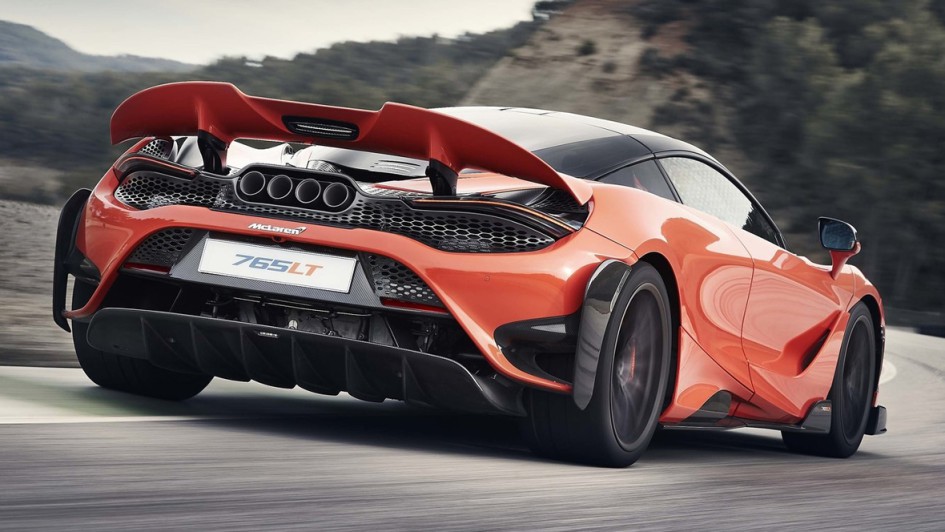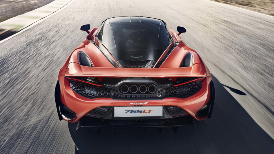 von 10: Für schnelle Rundenzeiten und maximale Stabilität bei hohem Tempo bietet der 765LT ein spezielles Aerodesign, unter anderem mit gestreckter Karosserie, Frontsplitter, Diffusor sowie einem aktiven Heckflügel oberhalb der vier Endrohre der Titan-Abgasanlage.