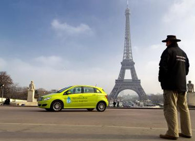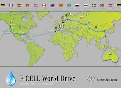 von 18: Daimler hat am 30 Januar drei Fahrzeuge der B-Klasse mit umweltfreundlichem Brennstoffzellenantrieb um die Welt geschickt.