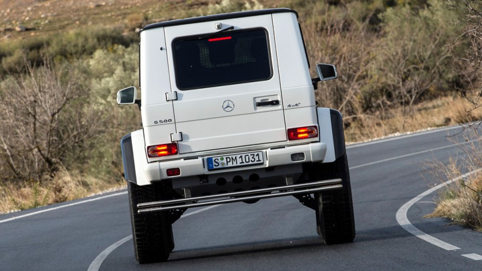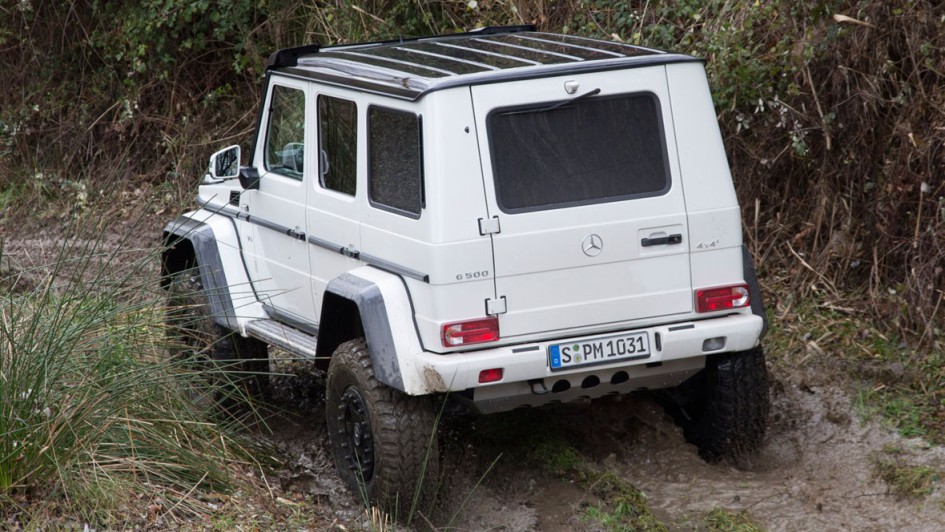 von 5: Egal ob mit der 22-Zoll-Bereifung für die Straße oder den grobstolligen 18-Zöllern für den Offroad-Einsatz sieht die G-Klasse damit im Rückspiegel ziemlich furchterregend aus.