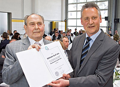 von 6: Wilhelm Graf Senior und Junior resümieren am Ende der Feier: "Durch den Neubau des Nutzfahrzeugzentrums fühlen wir uns für die Zukunft gut gerüstet." (Foto: Peter v. Beyer)